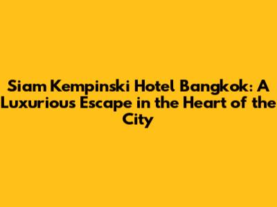 Siam Kempinski Hotel Bangkok: Luxury & Exclusivity
